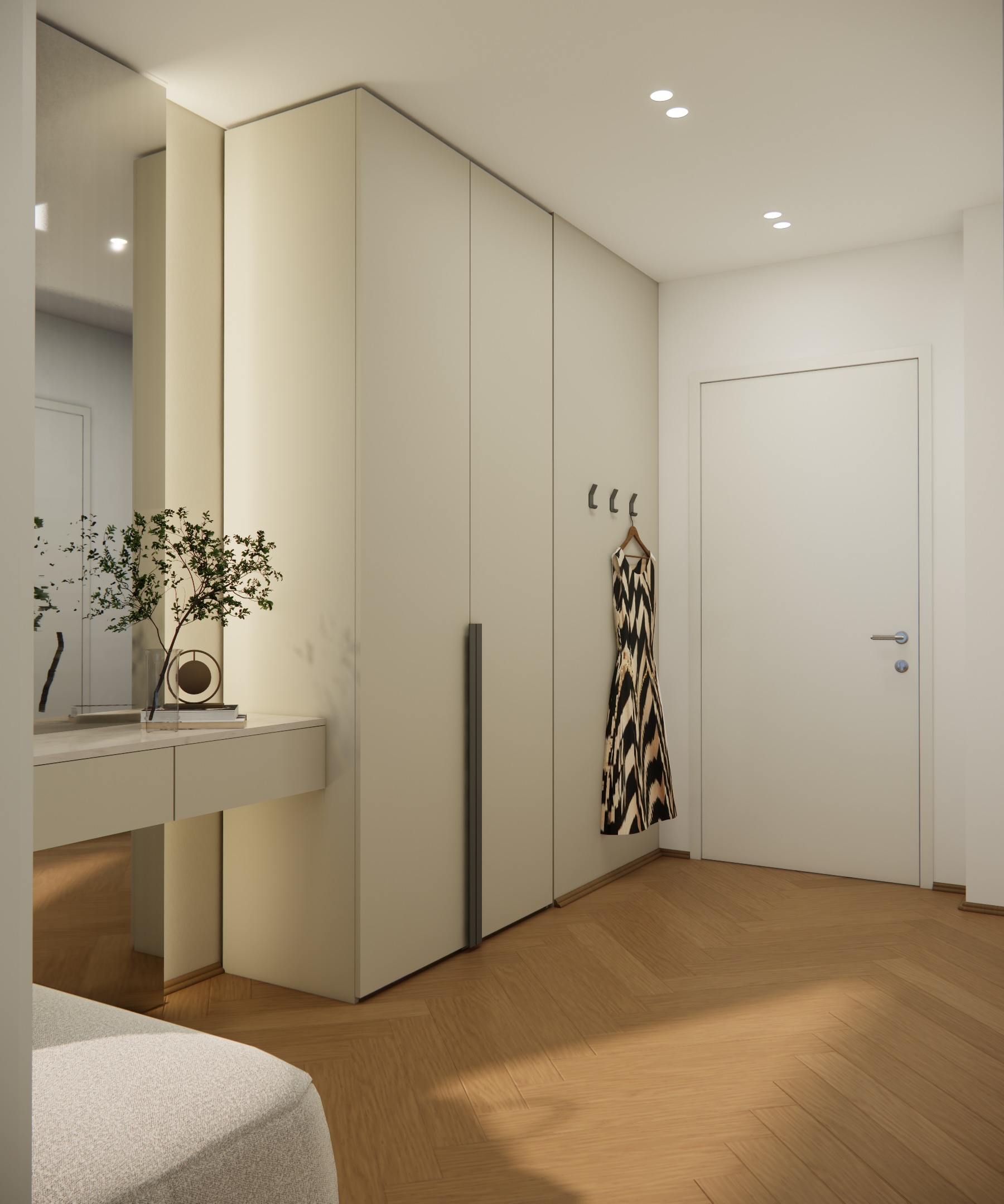 Dieses Projekt verdeutlicht, wie durch professionelles Interior Design eine komplette Wohnung in ein ruhiges, funktionales und ästhetisches Zuhause verwandelt werden kann. Klare Raumstrukturen, helle Farben, durchdachte Möblierung und ein abgestimmtes Lichtkonzept steigern nachhaltig die Wohnqualität. Gleichzeitig ist es ein Beispiel dafür, dass sich für jede Anforderung eine maßgeschneiderte Lösung finden lässt – damit die Wünsche und Bedürfnisse der Kunden vollständig erfüllt werden.